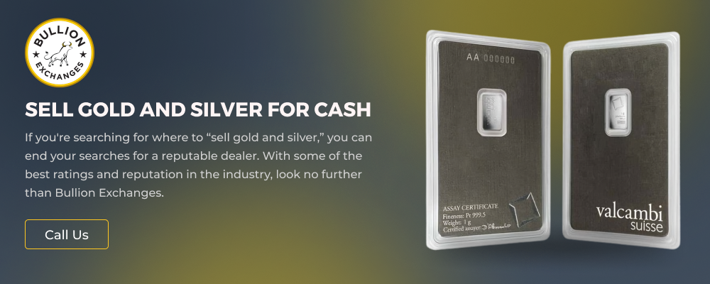 Bullion Exchanges is your trustworthy precious metals dealer to buy gold and silver in the USA. Located in the heart of NY and serving states such as Florida, Texas, and California, our selection includes gold, silver, and palladium for sale. As a fully accredited and licensed company, you can rest assured knowing that your gold, silver, and platinum exchange with us is authentic and safe. Additionally, we are also a coin dealer and appraise scrap metals, diamonds, and watches. As a precious metal refiner, we are one of the most competitive gold, silver, platinum, and palladium dealers in the market. Contact us today to learn more about precious metals and its market.